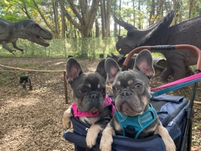 恐竜王国、ペットはカートに載せれば入場できるということで、