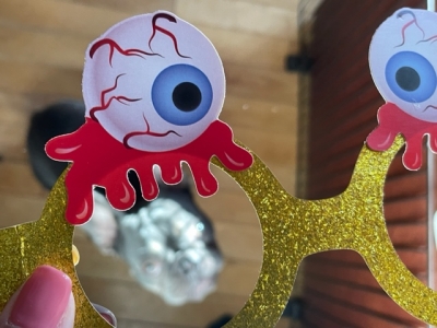 先月、この日のために買っておいたハロウィンの仮装メガネ。