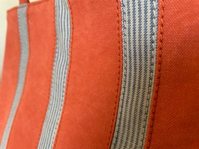 帆布本来の頑丈な素材感に、ヒッコリーのストライプのアクセントが爽やか。