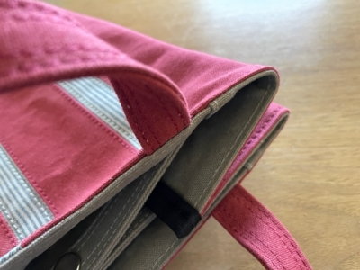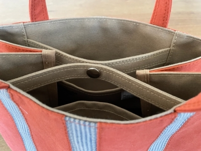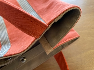 また、帆布一枚でも丈夫なのに、色違いの帆布を内側に2枚重ねという手の込みよう。