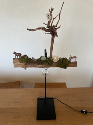 ライトには小さなアンティークの羊、馬、犬、牛などが配され、