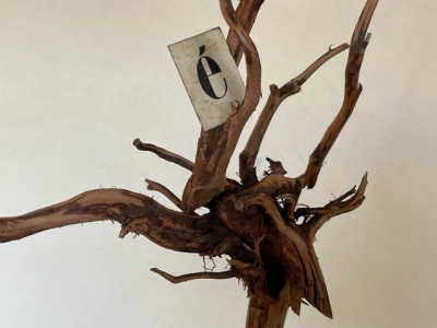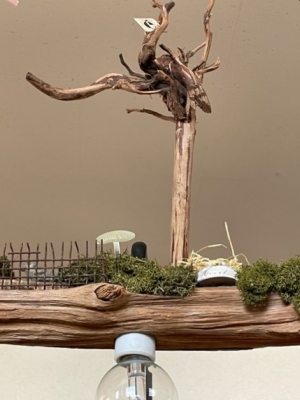 おもしろいカタチの流木とアジのあるアンティークのカード