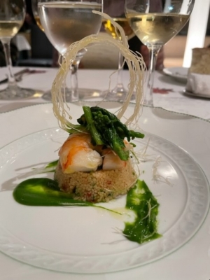 『海老とクスクスのサラダ 菜の花のピュレ』