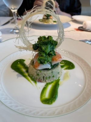 『海老とクスクスのサラダ 菜の花のピュレ』