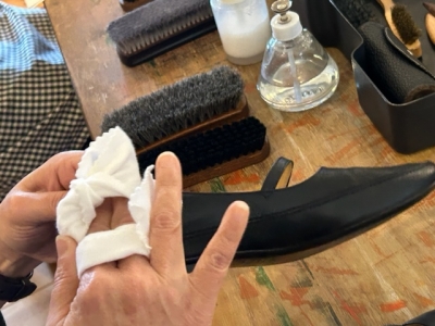 昨年に引き続き、靴磨きのコツや知識をご教授いただきました。
