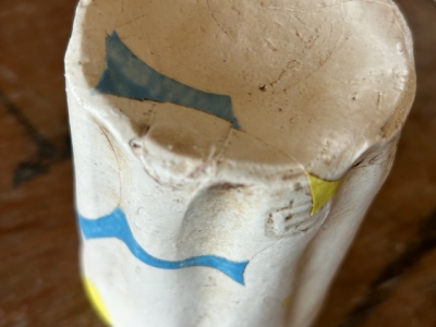 白化粧した生地に丸い紙を貼り付けマスキング。