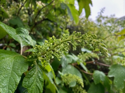 昨年は1輪しか花をつけなかったカシワバアジサイ、
