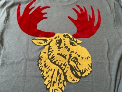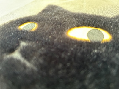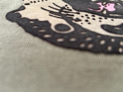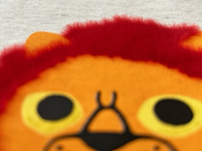 フラットではなく、植毛して飛び出すようなプリント。