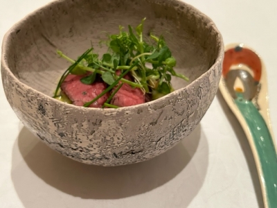 『熊本産あか牛うわみすじローストビーフとズッキーニのリゾット コンソメスープ』