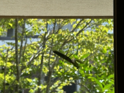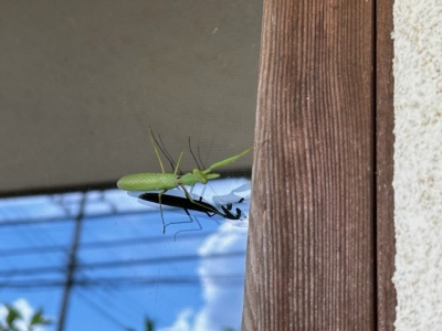 今朝、夫が書斎の窓の外にカマキリがいると言う。