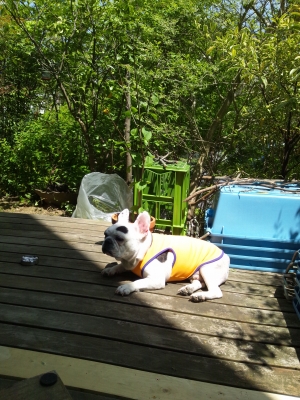 今よくCMでやっているカインズホームのクールウエアを着て、
