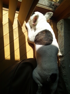 ワンコのフルもやはり日向ぼっこをしたいらしい。