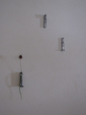 銀彩の掛け花入れ。