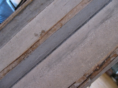 中にたまって固まった緑いろの傾斜のついた物体がそれです。