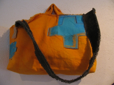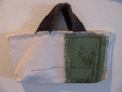 取っ手はしっかりと太い帆布で両端が切りっぱなしになっており、