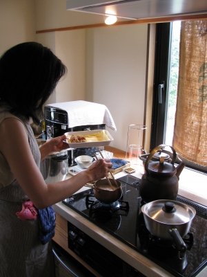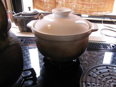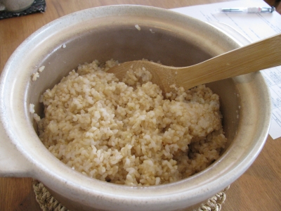 レクチャー前から、土鍋で弱火で1時間強、炊いていた玄米。