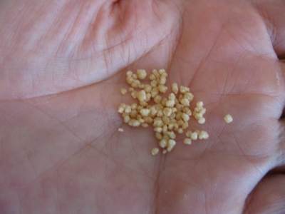 檜山さんの手のひらにクスクスの粒を載せて見せてくださいました。