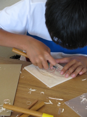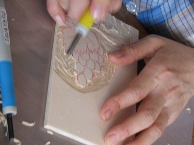 無心に彫っています。