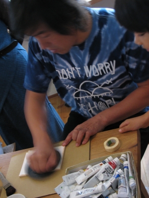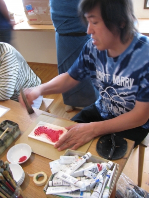 みなさん、熱心に彫った版で