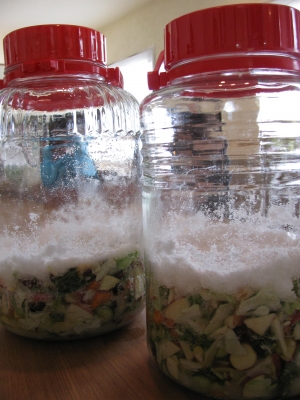 上白糖をどっさり加え、乳酸菌を添加。