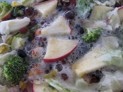今回は、リンゴ、ぶどう、ニンジン、キャベツ、きゅうり、ブロッコリー、とうもろこし、小松菜、ズッキーニ、玄米