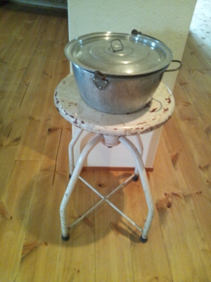 上に載っているアルミの鍋、カタチがよい。