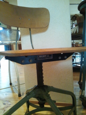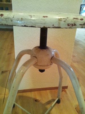 スチールの座面をクルクルまわして高さを調節。