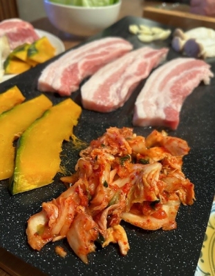 サムギョプサルが食べたいと言うので、近所のお店に食べに行こうと思ったが、