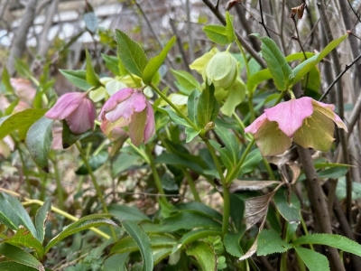 庭のあちらこちらにクリスマスローズが咲き乱れています。