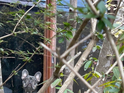 ↓「どこ行くの~?」と窓からのぞくアニモ