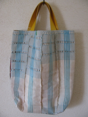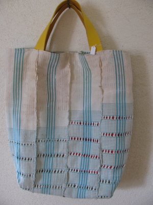 カラフルで大柄の千鳥格子の布と革のコンビのバッグが出ていました。