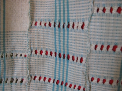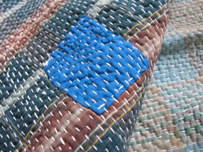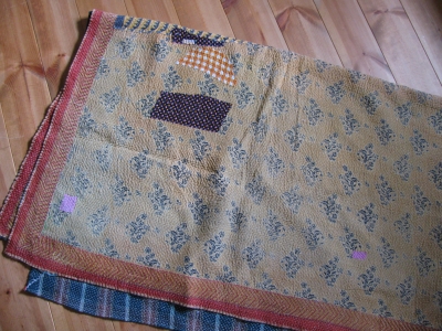 優しいグリーンがかった水色と、革の黄色が効いています。