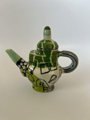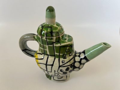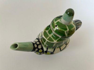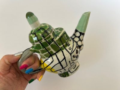 ラファさんの自由な造形や色遣いや描画で、オブジェのようなポット。