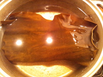 鍋の内側が気泡でいっぱいになってきたら、昆布を引き上げ、