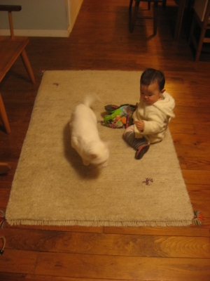 こちらはスタッフR1が昨年ゲットのオフホワイトのラグ。