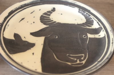 この絵は上絵の具ではなく、釉薬で描かれています。