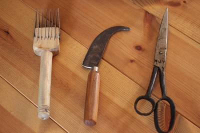 ギャッベは、羊から刈り取った原毛をスピンドルなどで紡いで糸状にしてから染めたものを織ります。