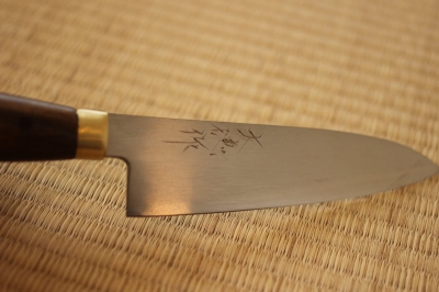 柄と鉄でとめるのではなく、仕込んで仕上げます。利き手によって刃の付き方が変わります。 (出刃包丁、刺身包丁など)