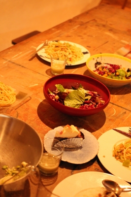 その香りや甘味が茹でながら表面積の大きいパスタにどんどん浸透していくというわけです。