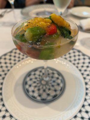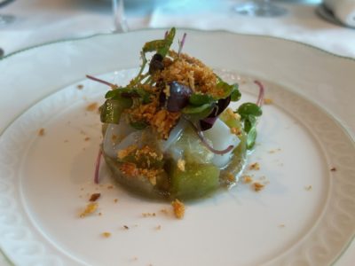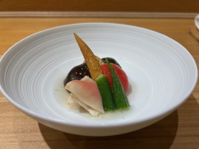 『カンパチと夏野菜のマリネ 焼きナスのスフォルマート』