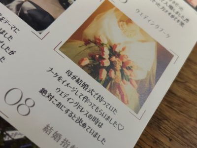 娘が私の結婚式(3月)の時の写真から同じように作ってもらったとのこと。