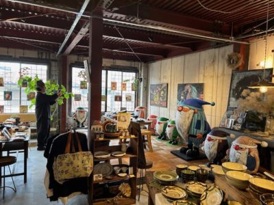 いたるところのお店の前に谷口サンタのオブジェが鎮座。