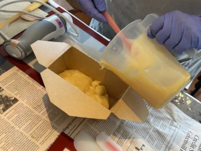 鹸化法には加熱しながら作る方法もありますが、今回は”コールドプロセス製法”で行いました。