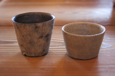 手びねりの指の跡が残るアジのある器です。