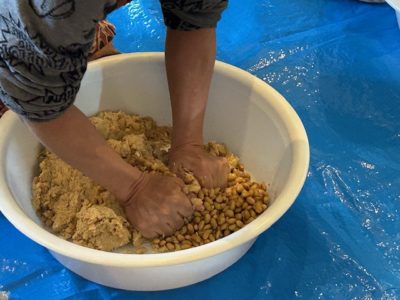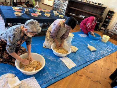 さて、昨日の午前中は、年イチ恒例となった喜屋武小夜子さんによる”味噌づくりの会”。