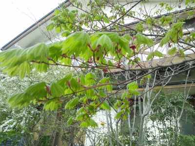 庭のコハウチワカエデの葉っぱがドワーっと開いてきました。
