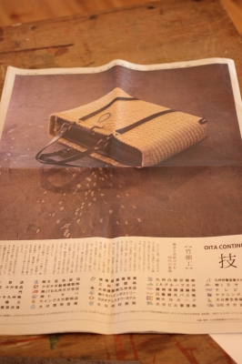 昨年末の大分の新聞の一面広告に西本さんのこのバッグが採用されました。