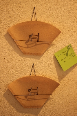 関昌生さんのワイヤーモビールとコーヒーフィルターホルダ