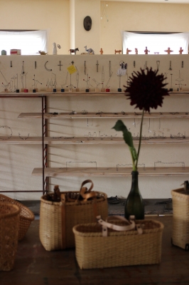 テイストこそ違えど、自然素材の竹で編んだ籠とのコンビネーションもよい。