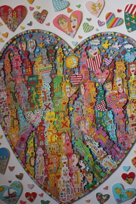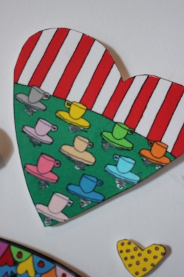 ポップで楽しいハートがたくさん3-Dで貼りついています。